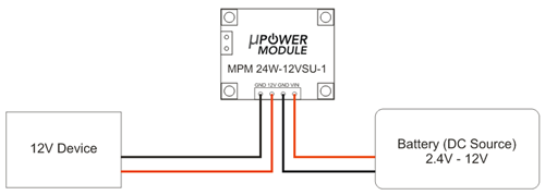 This Micro Power Module is a simple power supply that takes input from virtually any DC power source and steps it up to a low noise 12V signal. This up converter is useful in single cell lithium polymer applications requiring 12V where the system voltage may be too low for certain peripherals such as cameras. The small size of the unit makes it easy to mount on RC platforms, and other space constrained applications.